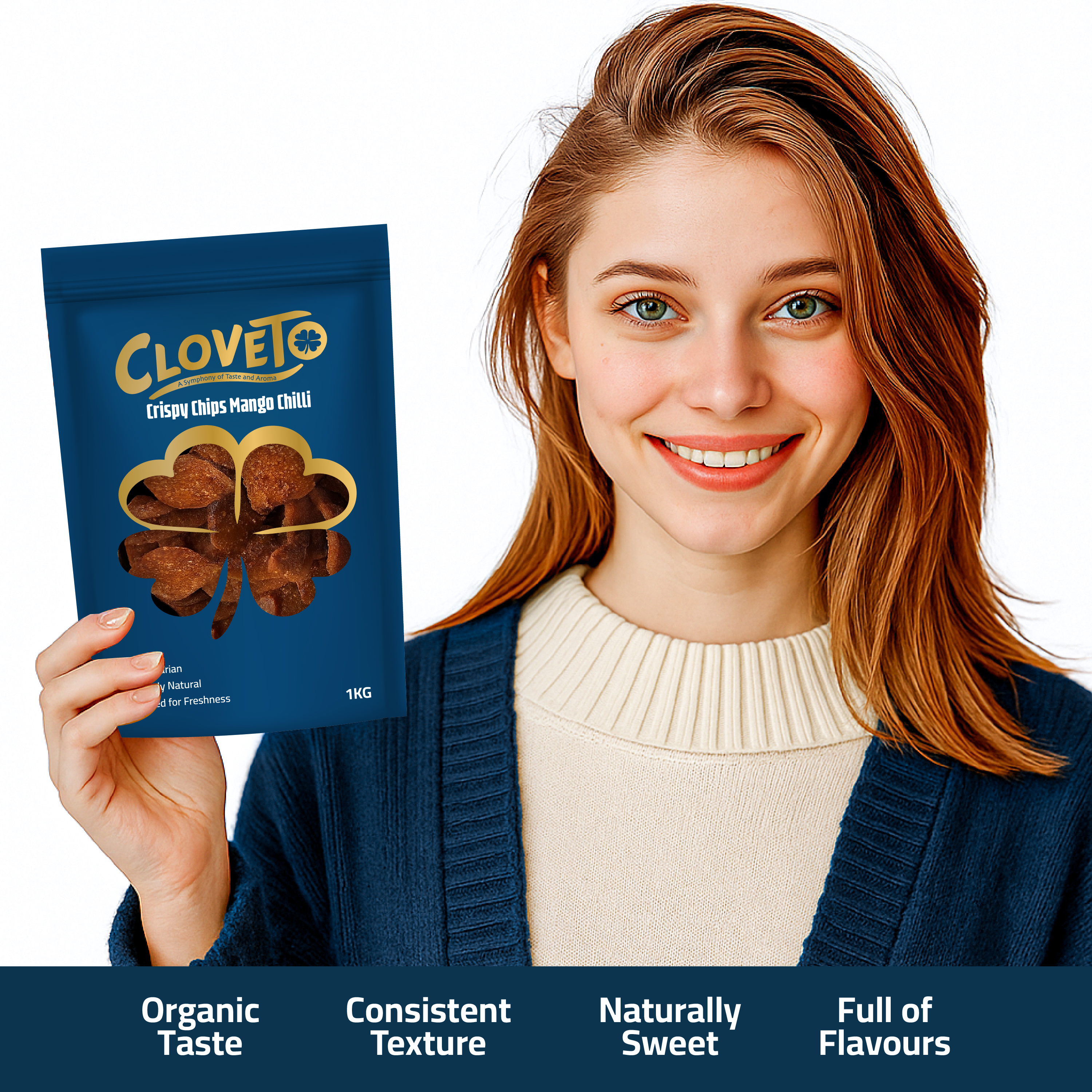 Packed with vitamins A & C, fiber, and antioxidants, these mango chilli chips are a healthy, guilt-free alternative to fried snacks. Perfect for movie nights, parties, on-the-go snacking, or pairing with beverages, CLOVETO Crispy Mango Chilli Chips are 100% natural, vegan, gluten-free, non-GMO, and preservative-free.