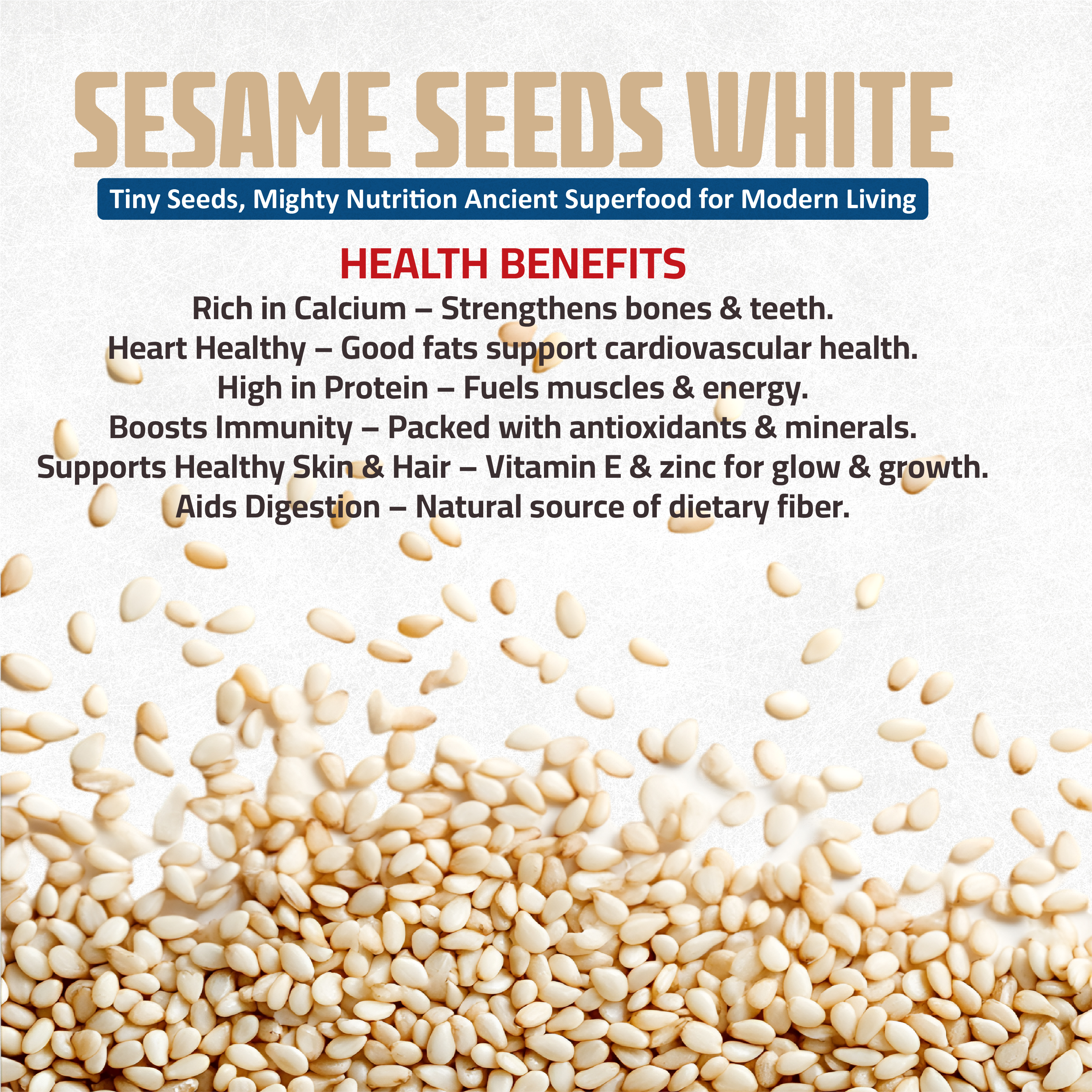 Premium White Sesame Seeds – Mild flavor and high nutritional value.